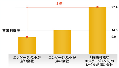 〈エンゲージメントの高い企業は1年後の営業利益率が3倍〉